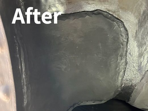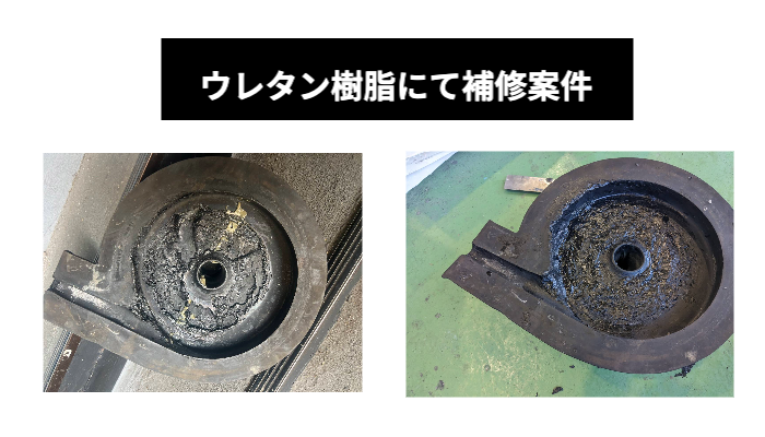 ポンプ内部のゴムライニングの劣化部を現場にてゴムライニングにて補修事案